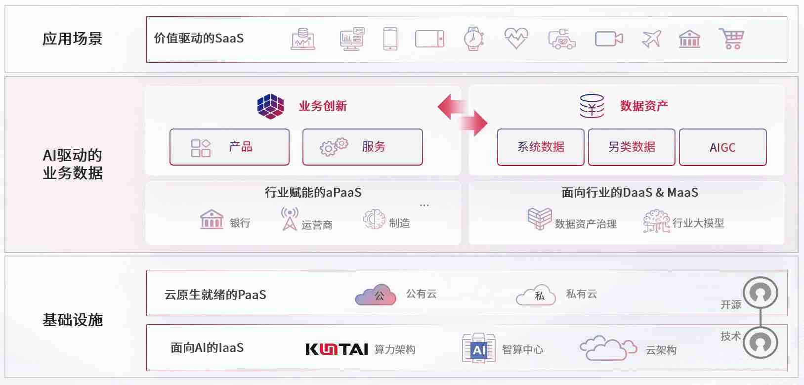 数字时代,,围绕企业数字化转型的关键要素,,,,GGBET数码开创性的提出数云融合战略和技术体系框架,,,着力在云原生、、、、数字原生、、、AI原生和信创产业上架构产品和服务能力,,为处在不同数字化转型阶段的快消零售、、、汽车、、金融、、、、医疗、、政企、、、教育、、、、运营商等行业客户提供泛在的敏捷IT能力和融合的数据驱动能力,,,构建跨界融合创新的数字业务场景和新业务模式,,,助力企业级客户建立面向未来的核心能力和竞争优势,,,全面推动社会的数字化、、智能化转型升级。。。。