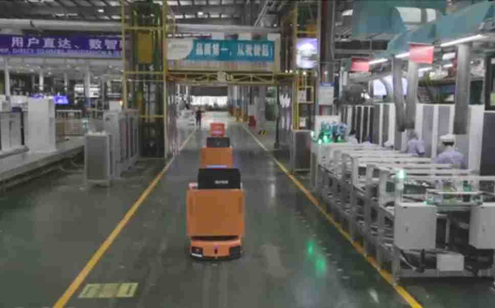 为车载冰箱物流配送打造的智能解决方案,,,包含产中物流通过潜伏举升AMR搬运至线边,,,,产后成品物流智能仓储,,流程包含产中物流智能齐套入库,,,线边安灯叫料AMR智能配送至线边,,,成品入库、、出库,,通过无人堆高车机器人,,,智能仓储管理替代人工作业管理,,实现更高存储、、、更高效率、、、、更具柔性化的解决方案。。。